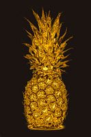 Digitale illustratie van een ananas in goud op zwart. Deze chique uitstraling is een opkomende trend voor 2022. Mooi te combineren met lampen en kaarshouders in dezelfde kleuren. Deze foto past in de Groovy Champagne style.