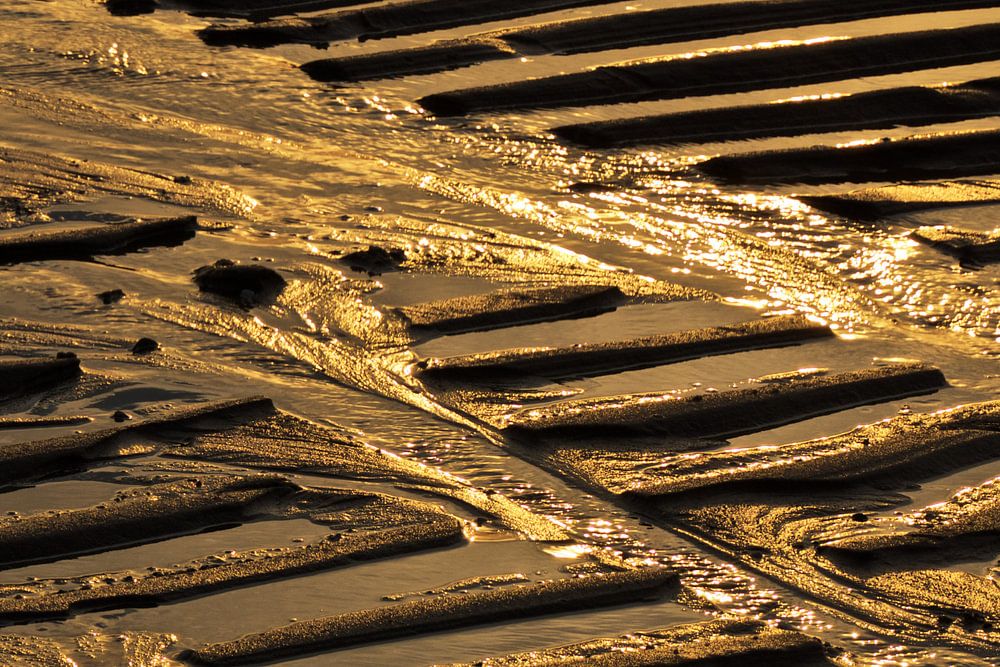 zonsondergang op het strand geeft een mooie gouden gloed
