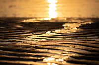 close up van gerimpeld zandstrand te Kijkduin tijdens gouden uurtje