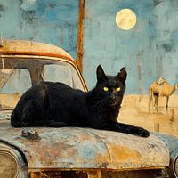 Ze kijkt je aan met haar gouden ogen, de zwarte kat;