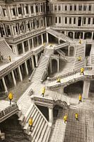 digitale fictieve Escherachtige pentekening afbeelding van huizen en trappen