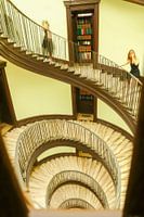 digitale fictieve Escherachtige pentekening afbeelding van huizen en trappen