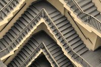 digitale fictieve Escherachtige pentekening afbeelding van huizen en trappen