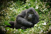 grappig uitziende jonge berggorilla [Gorilla beringei beringei], Bwindi Impenetrable National Park, Oeganda, Afrika