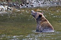 grizzly in canada ,neemt een bad