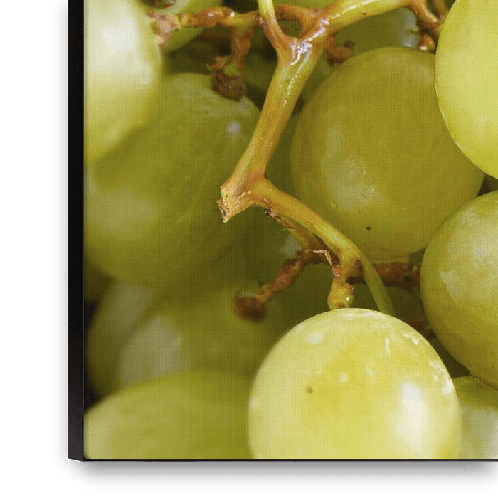 Koop de foto groene en paarse druiven als voedselachtergrond, close-up met geselecteerde focus en smalle scherpte van Maren Winter op canvas, aluminium dibond, (ingelijste) fotoprint, behang en ArtFrame, op maat geprint in Fine-Art kwaliteit.