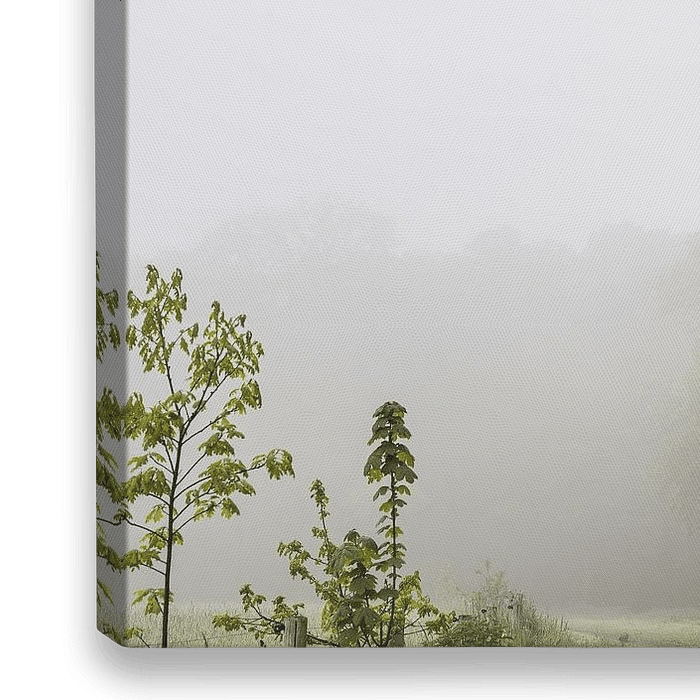 landschap in Renkum, Gelderland, met fris groene lentebomen, gehuld in koele ochtendmist