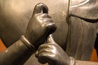 bronzen Japanse Boeddha uit de 17e eeuw met de handen in de mudra houding 'vuist van de wijsheid'.
