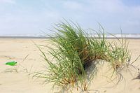 Helmgras op het strand en een verlaten fles met een boodschap???