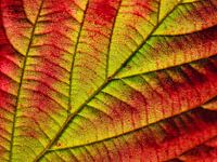 close up van herfstblad met bladnerf structuren zichtbaar in het zonlicht