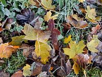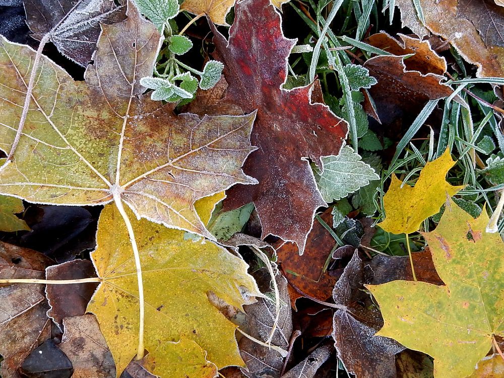 mooi gekleurde herfstbladeren in het gras