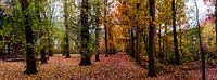 het bos staat nog in twijfel: de bomen lijken nog helemaal groen, op de grond is het helemaal herfst.