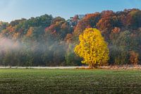 Prachtige herfstkleuren waarbij het gele boompje er prachtig uitspringt.