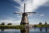 Zomerscène in het beroemde Kinderdijk kanaal met een windmolen. Oud Nederlands dorp Kinderdijk, UNESCO werelderfgoed. Nederland, Europa.