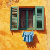 mediterraanse muur met half gesloten shutters en een enkel wasje