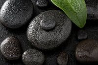 Basaltmassagesteen met waterdruppels, studiofotografie