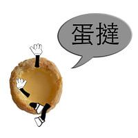 Food - Cantonese cuisine. Chinese Egg tart. 蛋撻, a pastry custard tart originating in the Guangzhou area derived from European pastries such as the Portuguese Pastel de Nata. There are two main varieties, the Hong Kong / Guangzhou such as those pictured and the Macau version which has a caramalised brown top. Happy tart jumping in the air with a speech bubble saying Egg Tart in Chinese.