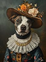 Koop dit bloemen kunstwerk hond in victoriaanse kleding van Gelissen Artworks als print op canvas, aluminium dibond, (ingelijste) fotoprint, behang en ArtFrame. Voor jou op maat geprint in Fine-Art kwaliteit.