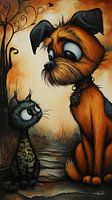 Cartoon Schilderijen van Hond & Kat – Speelse Kunst met een Glimlach.
