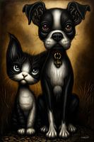 Koop dit digital art kunstwerk hond - kat - cartoon van Gelissen Artworks als reproductie op canvas, aluminium dibond, (ingelijste) fotoprint, behang en ArtFrame, op maat geprint in Fine-Art kwaliteit.
