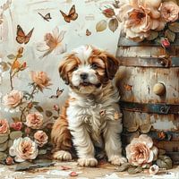 Het oude wijnvat werd het middelpunt van haar tekening. Ze tekende het vat met zoveel detail dat je de houtnerf bijna kon voelen. Rondom het vat groeiden klimplanten en bloemen, alsof de natuur het vat liefdevol had omarmd. De puppy, de kitten en de jonge vogels leken zich thuis te voelen in deze betoverende omgeving, beschermd door het wijnvat en omringd door de schoonheid van de natuur.