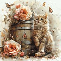 Het oude wijnvat werd het middelpunt van haar tekening. Ze tekende het vat met zoveel detail dat je de houtnerf bijna kon voelen. Rondom het vat groeiden klimplanten en bloemen, alsof de natuur het vat liefdevol had omarmd. De puppy, de kitten en de jonge vogels leken zich thuis te voelen in deze betoverende omgeving, beschermd door het wijnvat en omringd door de schoonheid van de natuur.