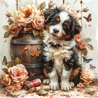 Het oude wijnvat werd het middelpunt van haar tekening. Ze tekende het vat met zoveel detail dat je de houtnerf bijna kon voelen. Rondom het vat groeiden klimplanten en bloemen, alsof de natuur het vat liefdevol had omarmd. De puppy, de kitten en de jonge vogels leken zich thuis te voelen in deze betoverende omgeving, beschermd door het wijnvat en omringd door de schoonheid van de natuur.