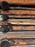 balken van een oud verweerd houten hooi hutje op de alm in Tirol Oostenrijk