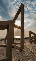 houten constructie op het slufterstrand met de zonsondergang op de achtergrond