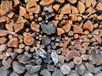 houtstapel langs de kant van de weg in Zwitserland / Wallis
