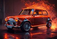 De klassieke Fiat 500 gloeit als een hartslag uit een ander tijdperk, herboren onder een baldakijn van neonlichten en drijvende stadsmist. Dit digitale kunstwerk vangt de geest van het Italië uit het midden van de vorige eeuw, verpakt in een futuristische omhelzing. De straten glinsteren van de reflecties, hun oppervlakken zijn glad met…