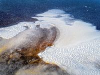 IJsformaties door de wind opgestuwd. Zonlicht en blauwe lucht geven deze foto kleur.