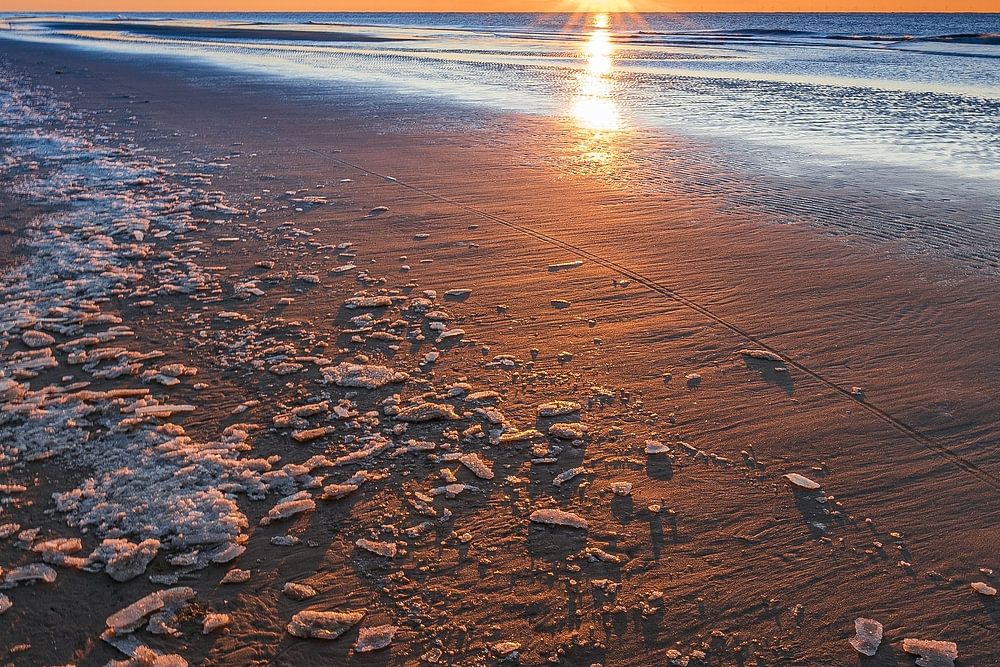 Woensdag 10 december kwam er een onverwacht mooie zonsondergang . Op de voorlopig laatste vorstdag , Het had zelfs aan de kust flink gevroren dat er brokken ijs op de vloedlijn lagen .