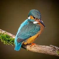 Een ijsvogel vrouwtje wacht op de tak terwijl haar mannetje aan het jagen is