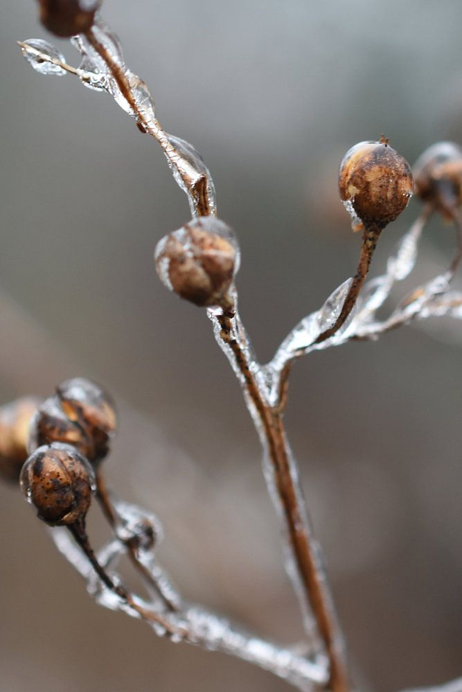 Dit plantje is met ijs gevroren en geeft een mooi effect.