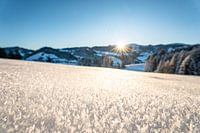 ijzige zonsopgang in Oberstaufen met uitzicht op Hochgrat, Staufen en Steibis