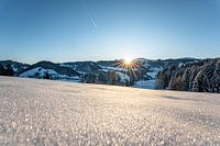 ijzige zonsopgang in Oberstaufen met uitzicht op Hochgrat, Staufen en Steibis