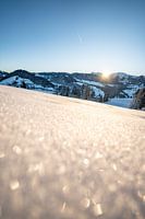 ijzige zonsopgang in Oberstaufen met uitzicht op Hochgrat, Staufen en Steibis