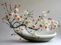 ikebana japanse bloemsierkunst voorbeelden met egale achtergrond voor aan de muur