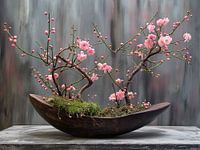 ikebana japanse bloemsierkunst voorbeelden met egale achtergrond voor aan de muur
