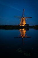 'illuminated ' is gefotografeerd in Kinderdijk. Eens per jaar staat een week lang de molens van Kinderdijk (Zuid-Holland, Nederland) in 'the spotlights'. Magische momenten brengen dat met zich mee. Deze avond trok een regenbui over. Hierdoor krijgt de foto iets dreigends, terwijl de molens 'warm licht verspreiden'.