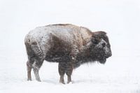 Amerikaanse bizon / Bizon bizon in de winter, bedekt met sneeuw en ijs tijdens zware sneeuwval, Yellowstone NP, Wyoming, USA.