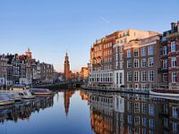 Zonsopkomst in Amsterdam. Amstel en Munttoren.