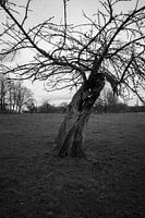oude fruitboom met doorkijk stukken ,maar toch heeft ie nog leven in zich en zal ie binnenkort weer bloesems hebben .