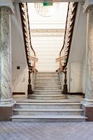 Deze marmeren trap die in tweeën splitst in een oud herenhuis