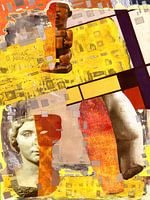 collage van gelli prints, afbeeldingen, kleurpotlood en marker