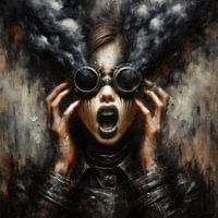 In dit kunstwerk versmelten elementen van steampunk met een expressieve weergave van een emotionele noodtoestand. De vrouw in het midden van het schilderij wordt geplaagd door innerlijke demonen, die zichtbaar worden in de vorm van rokerige, zwarte tranen. Een meesterwerk van duistere fantasie.