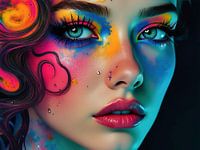 De foto toont een jong, knap model dat een opvallende uitstraling heeft. De kleuren in de afbeelding springen direct in het oog en zorgen voor een dromerige, surrealistische sfeer. Er is een subtiele balans tussen licht en schaduw, waardoor het beeld een zekere mystiek krijgt. De expressie van het model draagt bij aan deze bijzondere sfeer, waarbij de grenzen tussen realiteit en fantasie lijken te vervagen. De felle, levendige tinten roepen een bijna etherisch gevoel op, alsof het model in een andere dimensie aanwezig is. Tegelijkertijd zorgt de compositie ervoor dat het beeld zowel krachtig als esthetisch aantrekkelijk overkomt. De artistieke keuzes in kleur en belichting maken het geheel opvallend en uniek, met een duidelijke visuele impact die de aandacht van de kijker trekt. Kortom, een fascinerend portret waarin het gebruik van kleur en licht het alledaagse overstijgt en een mysterieuze, bijna magische sfeer oproept.