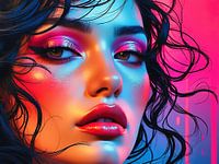 De foto toont een jong, knap model in een kleurrijke setting die meteen de aandacht trekt. De kleuren lijken bijna te zweven, wat de afbeelding een surrealistische sfeer geeft. Het model straalt een bijzondere elegantie uit, terwijl de expressie iets mysterieus en intrigerends behoudt. De levendige kleuren creëren een contrast met de zachte lijnen van het model, waardoor de foto een speelse, bijna dromerige kwaliteit krijgt. Het geheel lijkt op het grensvlak tussen werkelijkheid en fantasie te balanceren, wat de kijker uitnodigt om langer te blijven kijken. Door de subtiele vervaging en intensiteit van de kleuren ontstaat een unieke visuele ervaring die zowel modern als tijdloos aanvoelt. De foto speelt met de perceptie van ruimte en diepte, wat een extra dimensie toevoegt aan de sfeer. Dit samenspel van elementen resulteert in een kunstwerk dat de schoonheid van het model benadrukt, terwijl het geheel de toeschouwer meeneemt in een wereld die zowel herkenbaar als vervreemdend is.