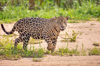 jaguar loopt door een rivierbedding van Hillebrand Breuker
